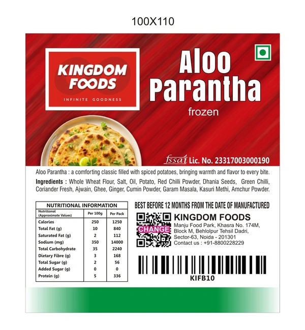 Aloo Parantha (Frozen) (120 Gram/Pc) – 5 Pieces/ 1 Pack