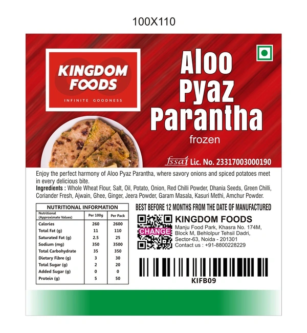 Aloo Pyaz Parantha (Frozen) (120 Gram/Pc) – 5 Pieces/ 1 Pack