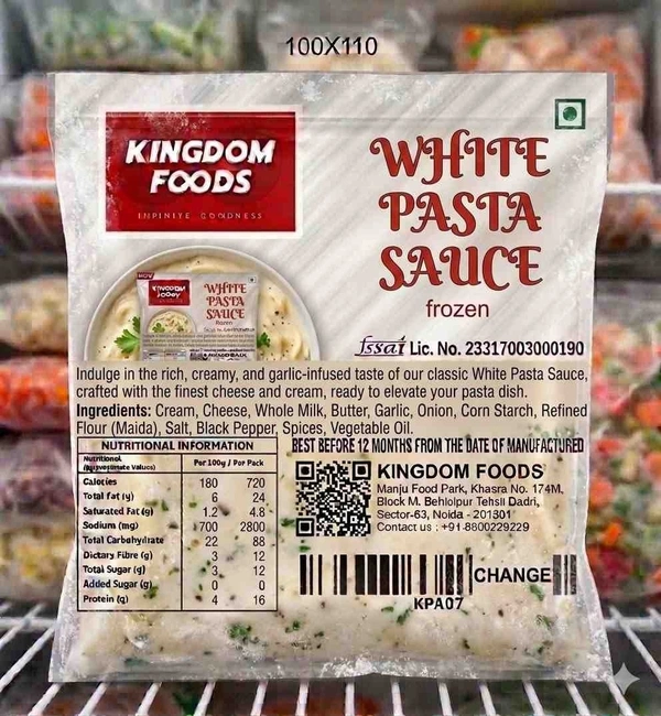 White Pasta Sauce- Creamy, buttery and indulgent, this classic white sauce brings smooth, cheesy richness to any pasta dish. Ready to eat and crafted with care using premium ingredients, it’s loved for its authentic flavour and quality. Keep frozen below –18°C to maintain freshness. Shelf life: 1 year. Follow our regeneration process for the best taste experience.